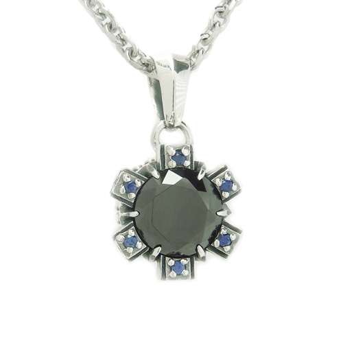 中央の大きなブラックジルコニアを取り巻く六芒星にはシンセッティックサファイアを使用。