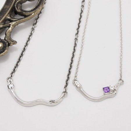 レディースタイプは、蛇の尻尾に、愛の守護石と言われるスクエア型のアメジストとホワイトトパーズをセットし、女性らしさと大人っぽさを感じて戴けるデザインに仕上げました。