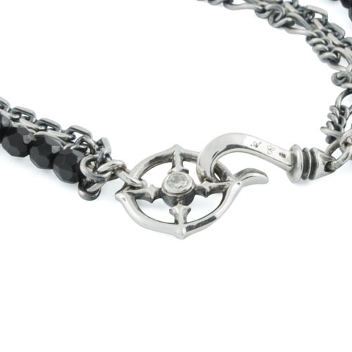 ブラックスピネルチェーンにシルバーアズキチェーンと変形シルバ喜平チェーンの3連ブレスレット。